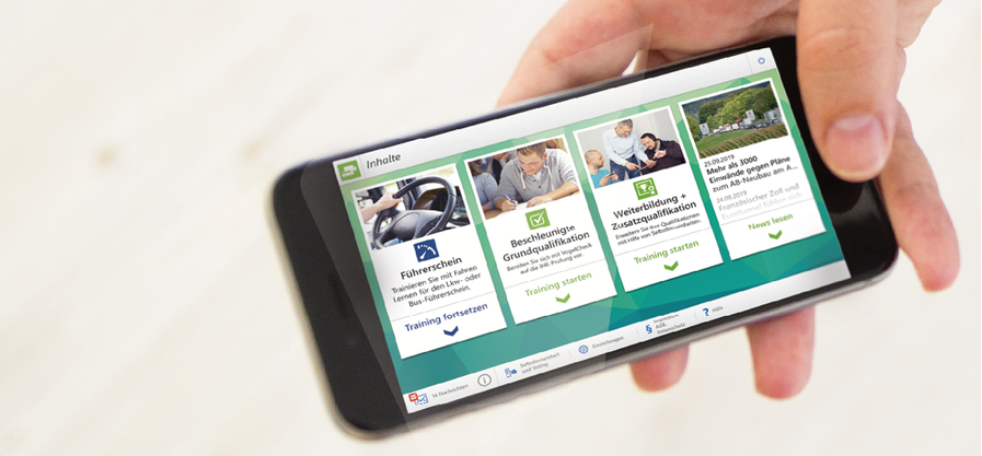 Die App für ein ganzes Berufskraftfahrer-Leben. Von Führerschein und Grundqualifikation bis hin zur Weiterbildung und darüber hinaus im Alltag am Steuer: