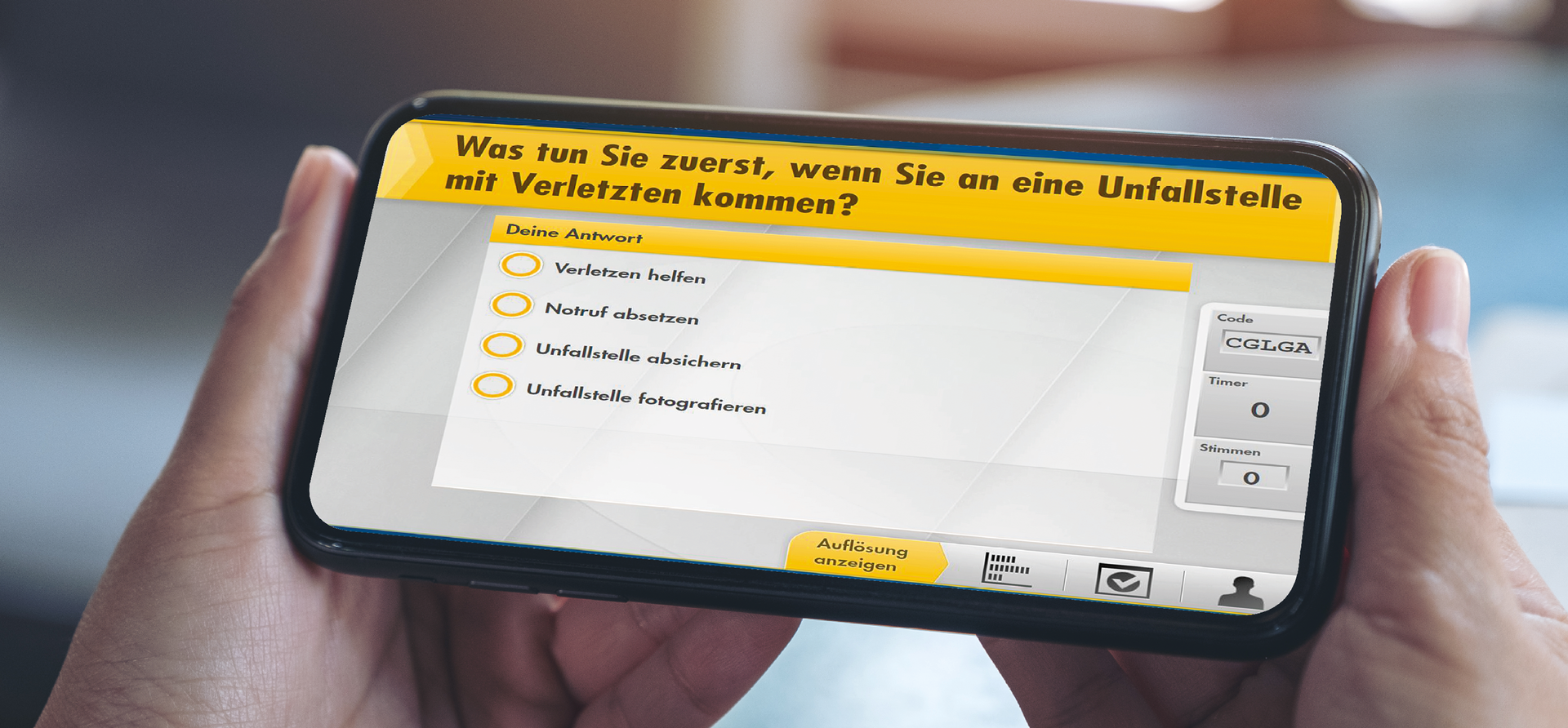 Lassen Sie IhreTeilnehmer*innen via Smartphone in der Vogel BKF App abstimmen und erfahren Sie so ihren Wissenstand.