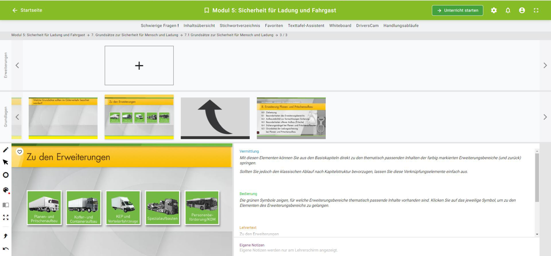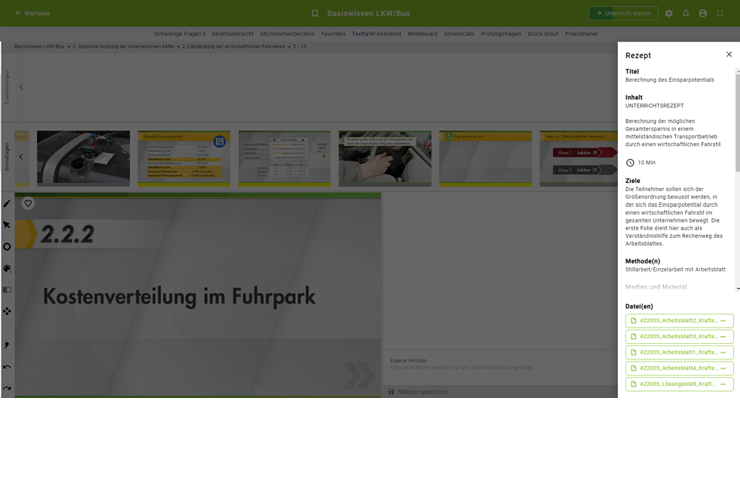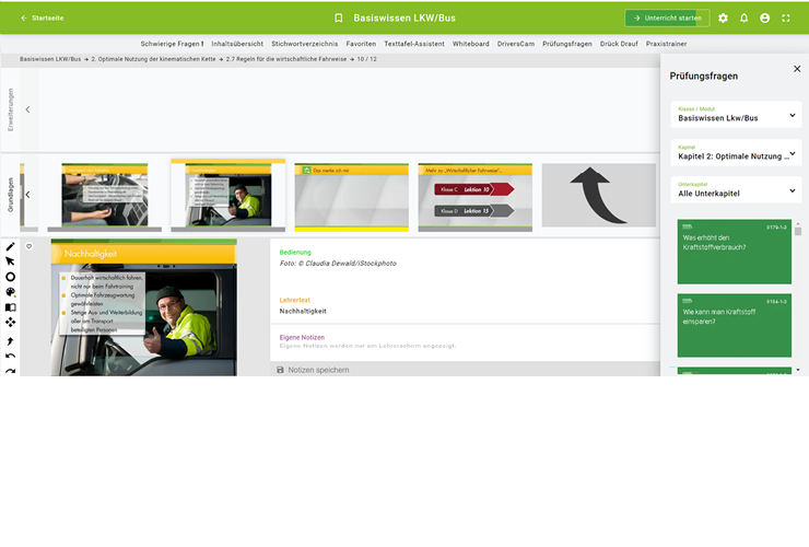 Stellen Sie sich Ihren Unterricht ganz nach Ihren Bedürfnissen und denen Ihrer Teilnehmer zusammen. Zahlreiche Funktionen unterstützen Sie dabei, Ihren Unterricht noch stärker auf Ihre Teilnehmer*innen zuzuschneiden. Für mehr Qualität in der beschleunigten Grundqualifikation und in der Weiterbildung.